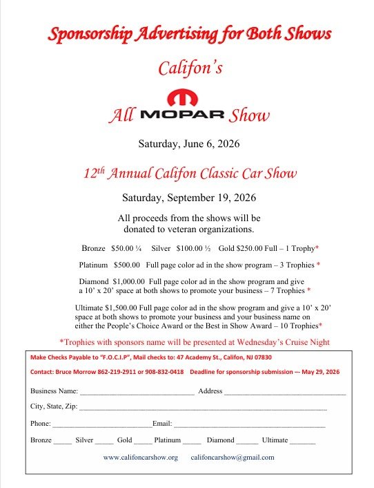 Or email us at: califoncarshow@gmail.com